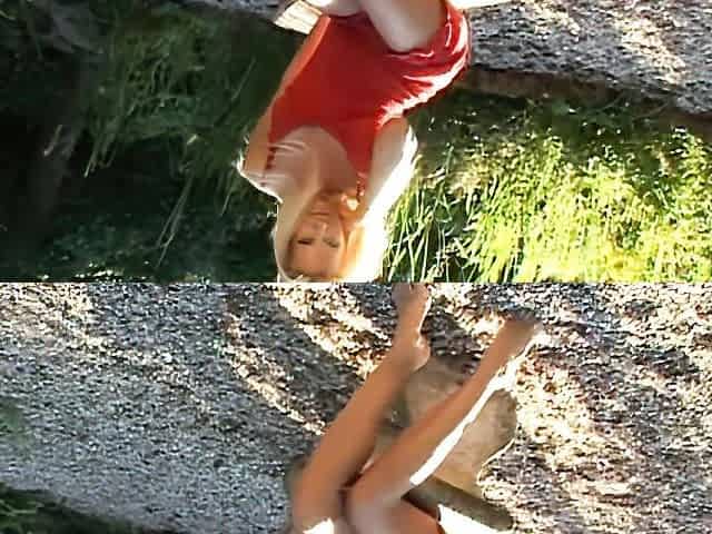 Gorgeous outdoor masturbation with a long-legged blonde Sandy Fantasy