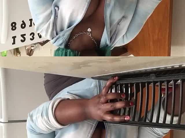 Girl in mini skirt stripping in the kitchen