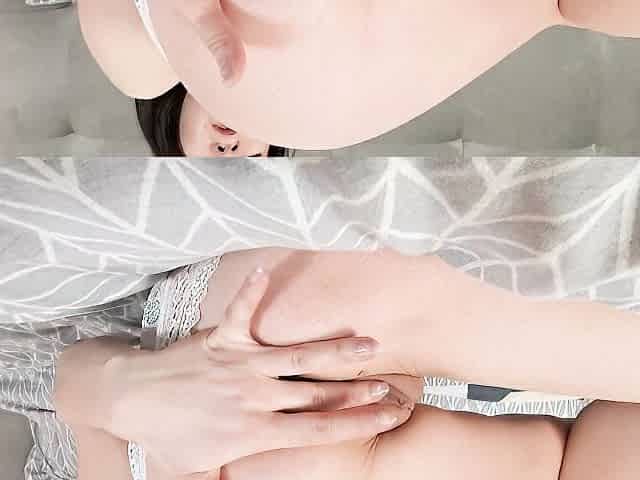 Beautiful sideways pose pussy masturbation with a hot brunette Mistica