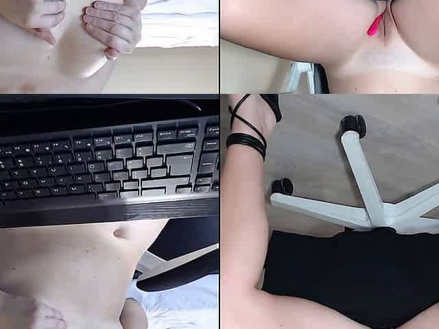Milf Ela Stance gives a wild home office striptease with a messy finish