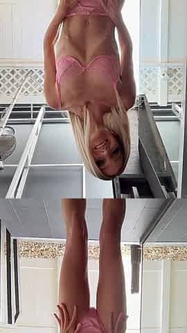 Skinny Blonde Pink Satin Lace Lingerie Striptease Dance to Nude