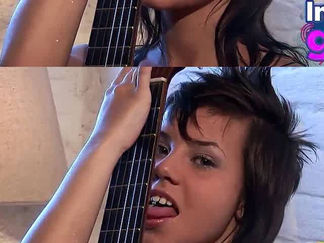 Hawt Paul showing her medium boobs and twat with guitar