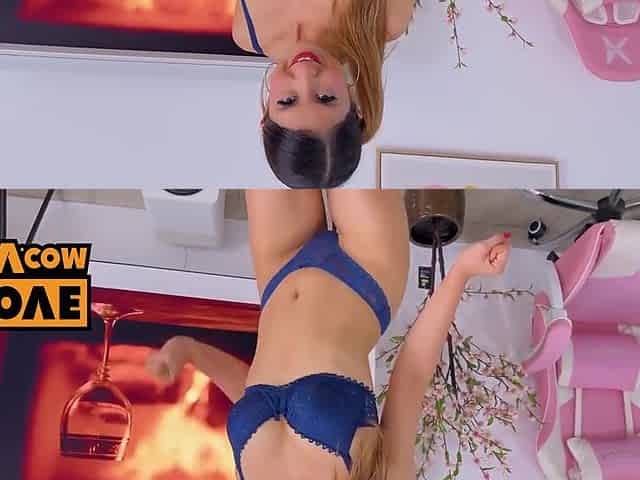Flexible long-legged brunette Mia De Vill fucks with her dildo