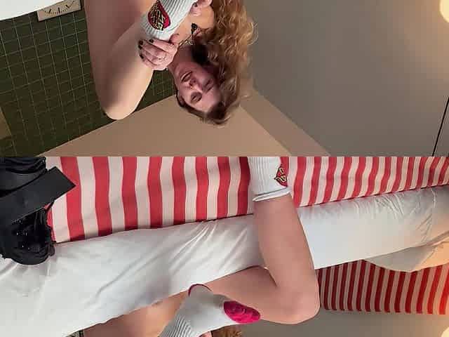 Close up teen foot worship