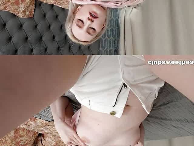 Blonde hottie Sofia Sey is touching her wet shaved pussy on cam