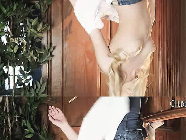 Sexy Blonde Babe With Big Boobs Strips Bra