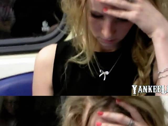 Blindfolded girlfriend Fantina surprised with a MMF threesome