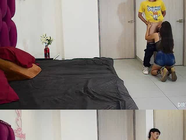 Caught Boyfriend Jerking Off - Surprise Threesome