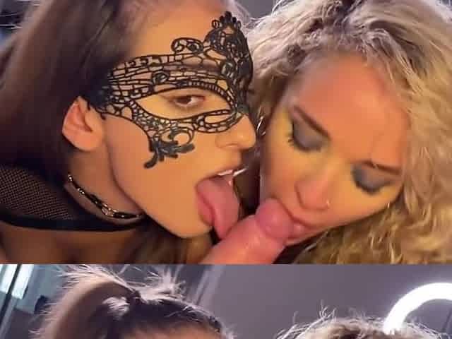 Surprise Birthday Present For My Blonde Busty Gf Is 2 Big Dicks In Her Mouth