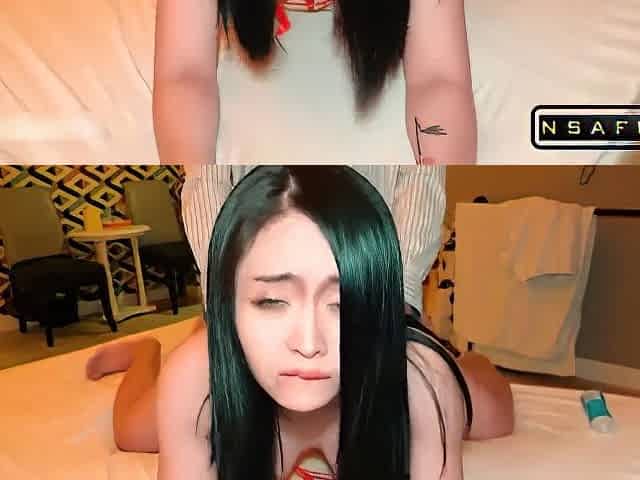 Asian mature lady with a hairy bush enjoys her wild fucktoy session and gets a creamy surprise