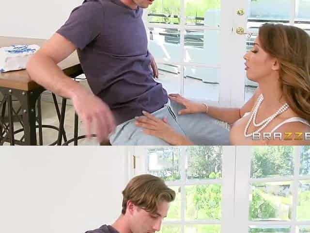 SURPRISE PIZZA DELIVERY WITH ORAL PLEASURE AND SEX FROM A BRUNETTE HAIR WENCH