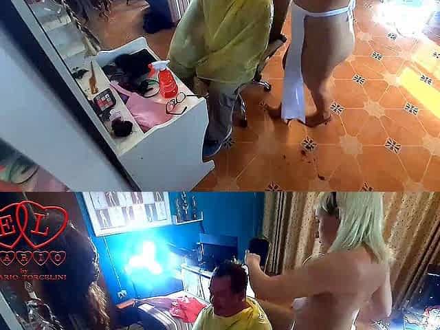 Prank! Barber woman undressing at her nudist barbershop. The client is surprised part 3