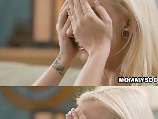 Chubby fat brunette surprised her step daughter while she masturbate with dildo, horny lesbo continue mmm