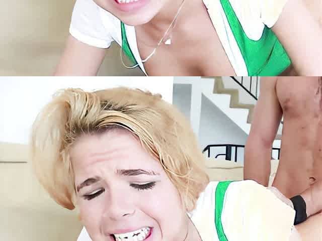 Skinny blonde hottie Alexa Grace gets surprised with a long dong