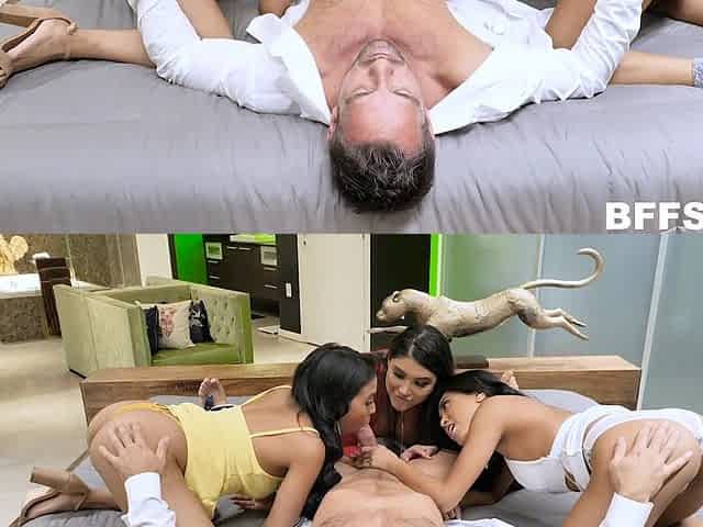 Jada Kai and two more girls decide to surprise a dude with a foursome