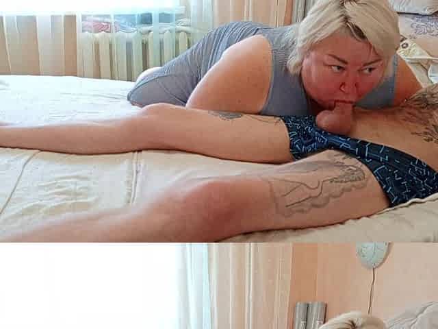 Neighbor Sucks My Swollen Cock Before Work to Get a Surprise in Her Mouth