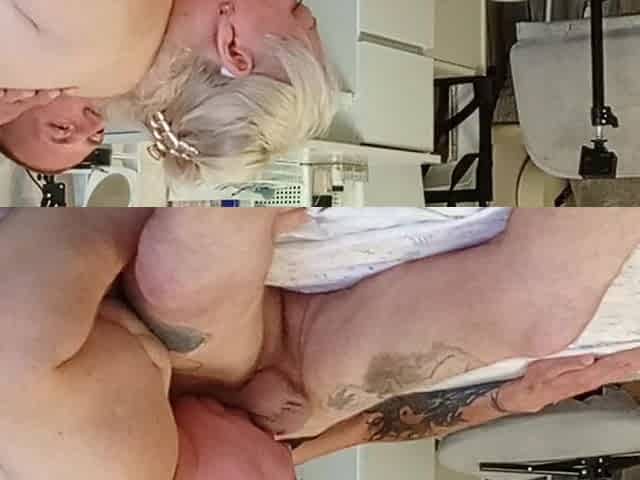 Blonde maid with huge ass is surprised in the kitchen while cleaning the floor!