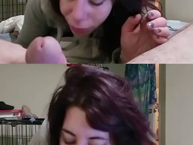 Nerdy mom pink shirt blow load cum in mouth swallows