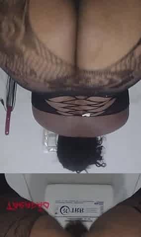 Hawt ebony beauty sitting on a dong.