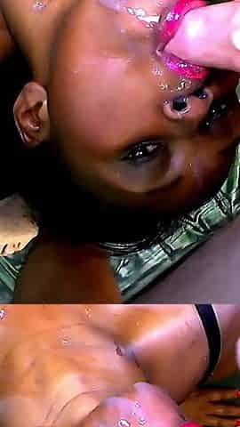 Black chick swallows cum