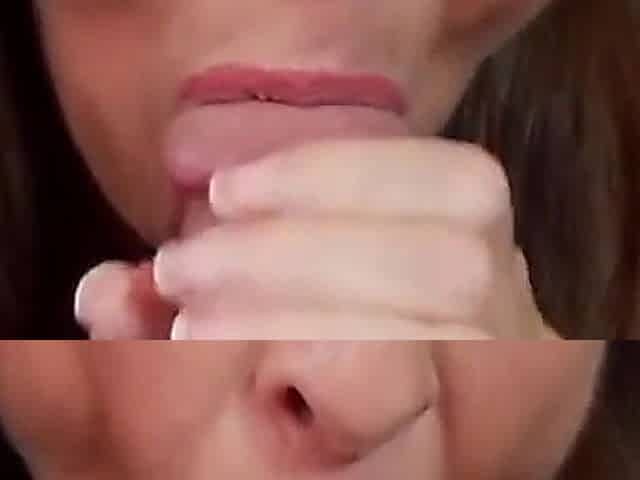 Brunette teen swallowing cum in POV blowjob