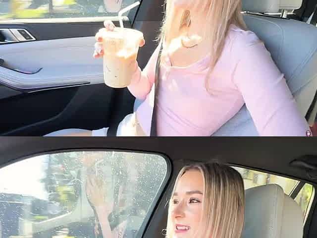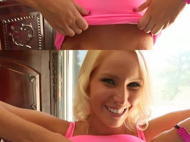 POV video of blonde Ash Hollywood in fishnet stockings having sex