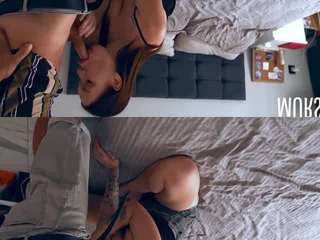 Darkhaired Girlfriend Loves Blowing Her BF’s Big Dick