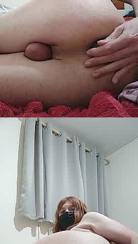 Red headed sissy swallows a double ended vibrator