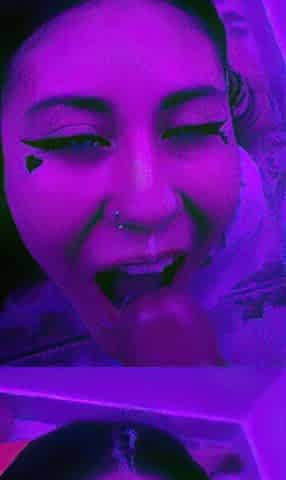 Purple-haired Neighbor Sweetly and Passionately Sucks Neighbor's Cock, Plays with Cum and Swallows Cum