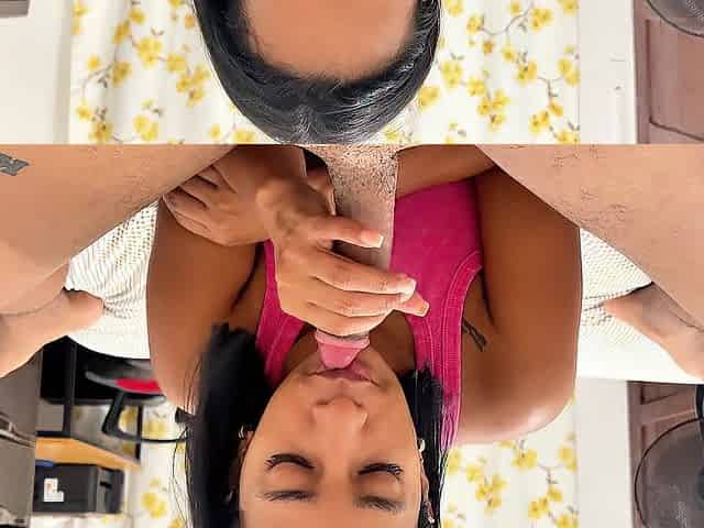 Obscene little doxy sucks unfathomable and gets a giant spunk flow in her throat