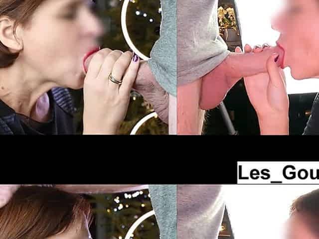 4K - MILF with Lipstick in Close-up Double View Gives Wonderful Blowjob and Swallows Cum