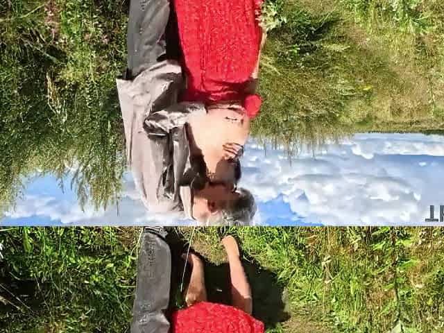 Country beauty gives a oral job outdoors