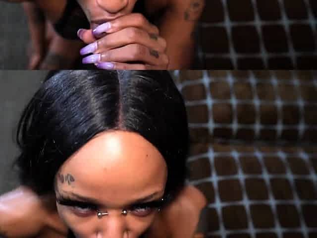 POV Blow Job with Ebony Sluty Mouth Who Loves to Swallow My Cum