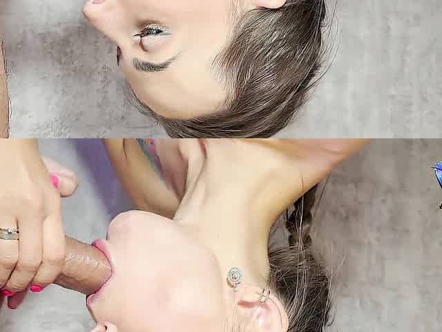 Big-Titted Teen Amateur Deepthroats and Swallows