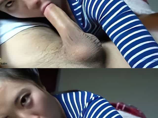 Japanese bitch sweetly moans and swallows in POV movie