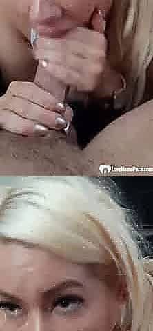 Blonde bombshell sucks me off and swallows my load