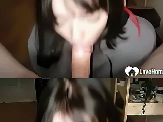 Amateur teen girlfriend gives a blowjob and swallows a cumshot