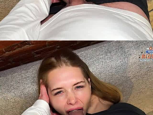 College Girl Gives Tremendous Blowjob and Ends up with Her Mouth Full of Milk! Deep Throat