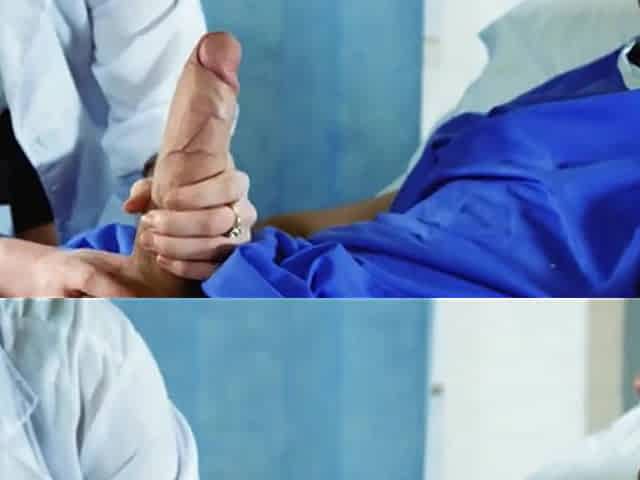 Hot blonde nurse gets a massive facial by a patient