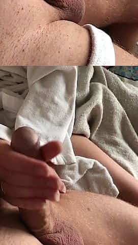 Wife’s handjob after shower ends with cumshot