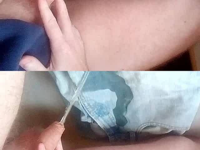 John is flooding his Jeans with his piss