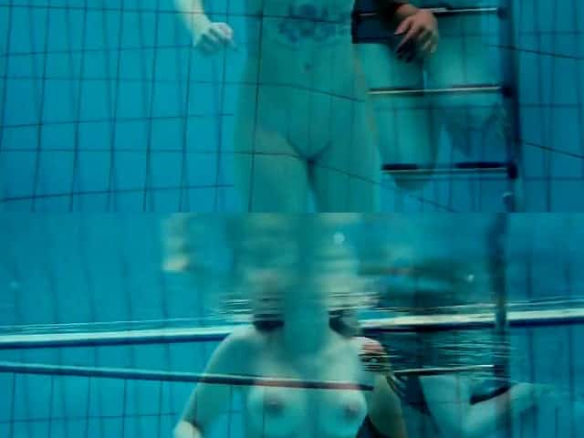 Babes in a swimming pool enjoy making each other moan softly
