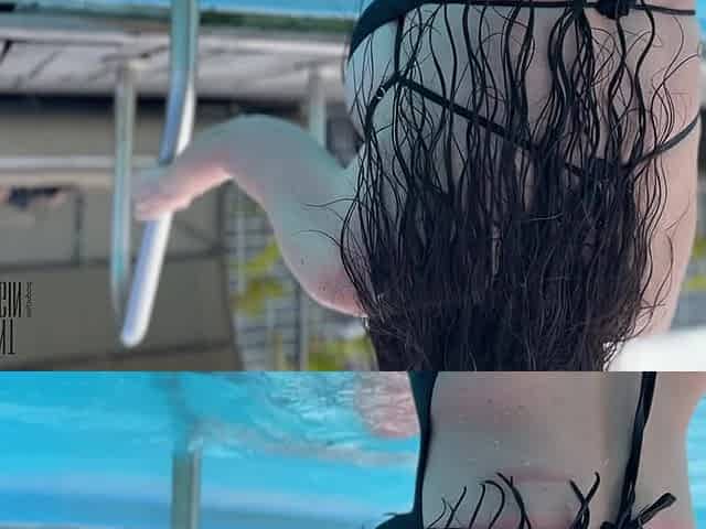 Lina Mercury is sexy and lustful in the public swimming pool