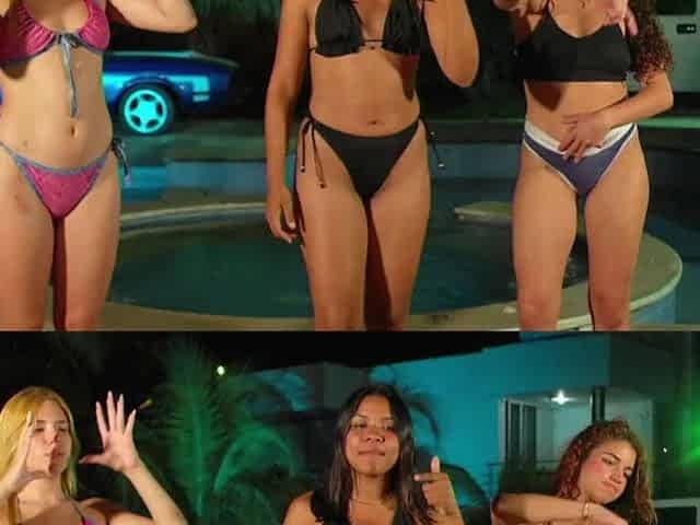 Two young sluts jump out of their bikinis at pool