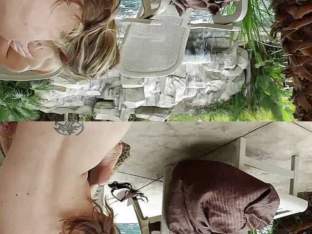 Naudia Nyce poolside blowjob and swallow