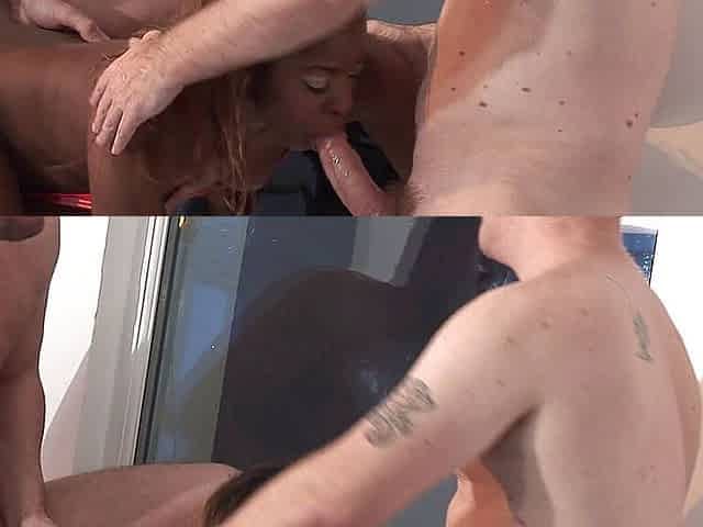 Ebony chick in threesome trouble with two big black cocks
