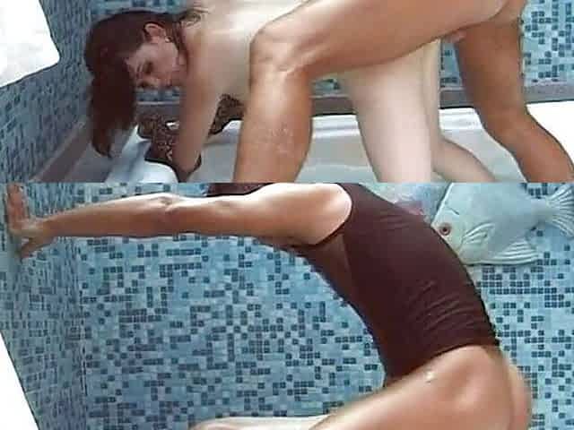 Double cum shots at the pool underwater fuck