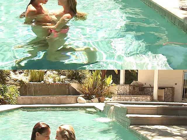 Brett Rossi & Celeste Star, awesome indoor and outdoor pool lesbo scene