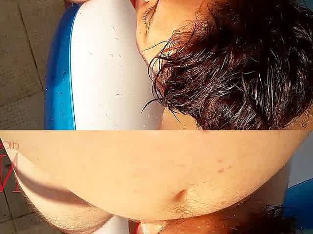 Small-titted sexy girl takes pussy care outdoor, on the pool - solo masturbation video