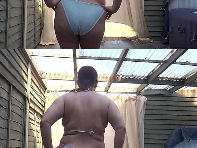BBW wife showing off belly and boobs in bikini